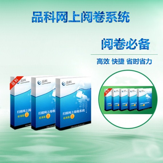 品科網上閱卷由“無需定位、模糊識別”的掃描識別軟件、采用B/S架構設計的主客觀題網上評卷系統及成績統計、分析評價、成績查詢、優 秀試卷講評系統等幾大部分構成。根據不同的應用需要,品科網上閱卷已形成了校園版、教育局版等系列產品。